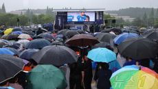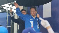 이재명 후보 '우중 연설'