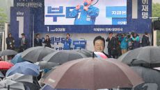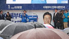 우중 유세 하는 이재명 대선 후보