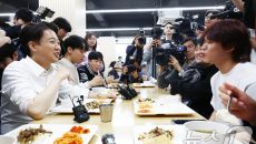 (서울=뉴스1) 김민지 기자 = 이준석 개혁신당 대통령 후보가 15일 서울 서초구 서울교육대학교를 찾아 학생들과 학식을 먹으며- 2025-05-15 12:39