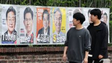(서울=뉴스1) 오대일 기자 = 15일 오전 서울 종로구 예술가의집 담장에 제21대 대통령선거 선거벽보가 부착돼 있다. 선거벽- 2025-05-15 11:34
