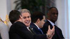 (도하 AFP=뉴스1) 우동명 기자 = 마코 루비오 미국 국무장관과 스콧 베선트 재무장관이 14일(현지시간) 도하 왕궁에서 열- 2025-05-15 11:24