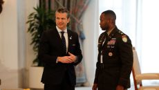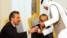 (도하 AFP=뉴스1) 우동명 기자 = 피트 헤그세스 미국 국방장관이 14일(현지시간) 도하 왕궁에서 열린 도널드 트럼프 대통- 2025-05-15 11:24
