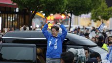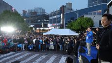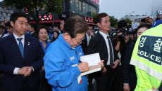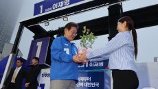 이재명 후보 연설에 주먹 불끈 쥔 어린이 지지자