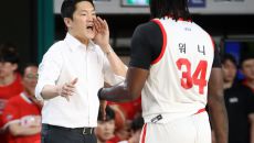 (창원=뉴스1) 윤일지 기자 = 15일 오후 경남 창원체육관에서 열린 '2024-25 KCC 프로농구 챔피언결정전 6차전' 창- 2025-05-15 19:27