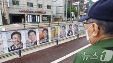 (수원=뉴스1) 김영운 기자 = 15일 경기 수원시 권선구의 한 거리에서 시민들이 제21대 대통령선거 후보자들 선거 벽보를 보- 2025-05-15 10:37