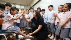 (대구=뉴스1) 공정식 기자 = 스승의 날인 15일 오전 대구 동구 영신초등학교에서 열린 '스승의 날 기념 사랑의 세족식'에- 2025-05-15 10:12