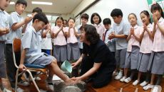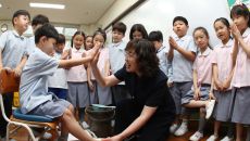 스승의 날 학생들 발 씻겨주는 선생님