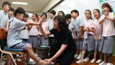 스승의 날 학생들 발 씻겨주는 선생님