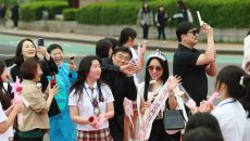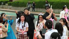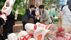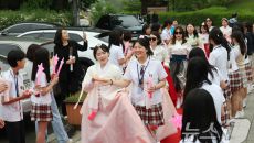 (수원=뉴스1) 김영운 기자 = 스승의 날인 15일 오전 경기 수원시 팔달구 매향중학교에서 학생들이 스승의날 기념 등굣길 레드- 2025-05-15 09:20