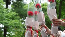 (서울=뉴스1) 신웅수 기자 = 스승의 날인 15일 오전 서울 노원구 동일초등학교에서 선생님들이 학생들에게 받은 꽃을 들고 기- 2025-05-15 09:20
