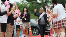 (수원=뉴스1) 김영운 기자 = 스승의 날인 15일 오전 경기 수원시 팔달구 매향중학교에서 열린 스승의날 기념 등굣길 레드카펫- 2025-05-15 09:20