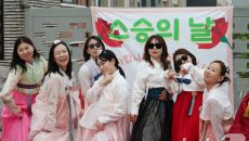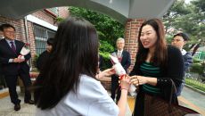 (수원=뉴스1) 김영운 기자 = 스승의 날인 15일 오전 경기 수원시 팔달구 매향중학교에서 학생들이 스승의날 기념 등굣길 레드- 2025-05-15 09:19
