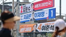 (전국=뉴스1) 박소영 양희문 정우용 강미영 기자 = 공식 선거운동이 시작된 지 4일째 전국 곳곳에서 현수막을 비롯한 선거 시- 2025-05-15 08:57