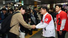 (서울=뉴스1) 이광호 기자 = 김문수 국민의힘 대통령 후보가 15일 오전 서울 구로구 신도림역에서 출근길 시민들에게 인사하고- 2025-05-15 08:57