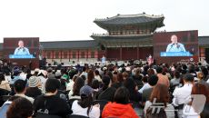 (서울=뉴스1) 김명섭 기자 = 유인촌 문화체육관광부 장관이 15일 경복궁 흥례문 앞 광장에서 ‘628돌 세종대왕 나신 날 기- 2025-05-15 18:37