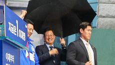 (순천=뉴스1) 안은나 기자 = 이재명 더불어민주당 대통령 후보가 '이순신 호국 벨트' 유세차 15일 오후 전남 순천시 연향동- 2025-05-15 16:36
