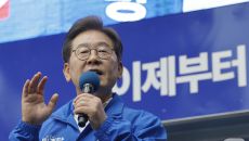 (순천=뉴스1) 안은나 기자 = 이재명 더불어민주당 대통령 후보가 '이순신 호국 벨트' 유세차 15일 오후 전남 순천시 연향동- 2025-05-15 16:13