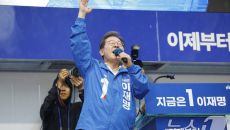 (순천=뉴스1) 안은나 기자 = 이재명 더불어민주당 대통령 후보가 '이순신 호국 벨트' 유세차 15일 오후 전남 순천시 연향동- 2025-05-15 16:12