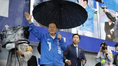(순천=뉴스1) 안은나 기자 = 15일 오후 전남 순천시 연향동 패션의 거리에서 이재명 대통령후보의 선거운동원들이 지지를 호소- 2025-05-15 15:54