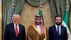 (리야드 AFP=뉴스1) 권영미 기자 = 도널드 트럼프 미국 대통령(제일 왼쪽)과 아흐메드 알샤라 시리아 대통령, 그리고 모하- 2025-05-15 15:38