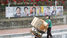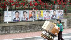 선거벽보 앞 지나는 삶의 무게는…