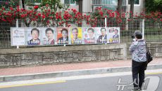 (대구=뉴스1) 공정식 기자 = 15일 오후 대구 중구 남산동 한 아파트 울타리에 곱게 핀 장미꽃 아래 제21대 대통령 선거에- 2025-05-15 15:37