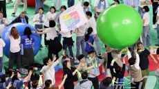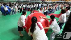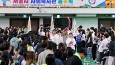 (서울=뉴스1) 이동해 기자 = 15일 서울 성북구 고려대학교 화정체육관에서 열린 '서울시 사회복지관의날 기념 올☆픽'에서 참- 2025-05-15 15:26