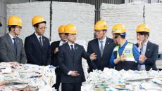 (서울=뉴스1) = 김완섭 환경부장관이 15일 대전시 대덕구 소재 한솔제지 대전공장에서서 '온라인 플랫폼 활용 종이팩 회수 시- 2025-05-15 15:26