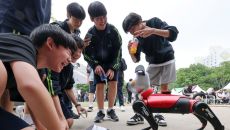 (서울=뉴스1) 박세연 기자 = 15일 서울 양천구 양천구청과 양천공원일대에서 열린 Y교육박람회 2025를 찾은 학생들이 로봇- 2025-05-15 15:21