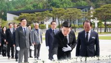 (광주=뉴스1) = 김이수 학교법인 조선대 이사장과 김춘성 조선대 총장, 임채효 총학생회장 등이 15일 광주 북구 국립 5·1- 2025-05-15 15:21