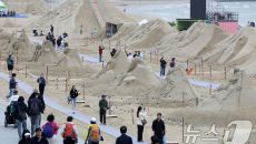 (부산=뉴스1) 윤일지 기자 = 15일 오후 부산 해운대해수욕장을 찾은 시민, 관광객들이 다양한 모래조각 작품을 구경하고 있다- 2025-05-15 15:20
