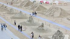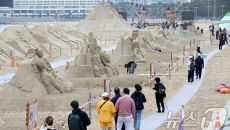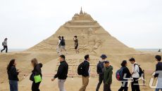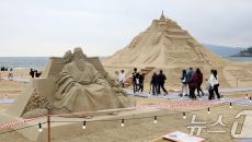 (부산=뉴스1) 윤일지 기자 = 15일 오후 부산 해운대해수욕장을 찾은 시민, 관광객들이 다양한 모래조각 작품을 구경하고 있다- 2025-05-15 15:20