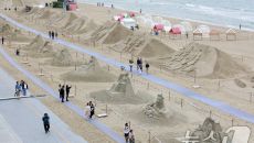 (부산=뉴스1) 윤일지 기자 = 15일 오후 부산 해운대해수욕장을 찾은 시민, 관광객들이 다양한 모래조각 작품을 구경하고 있다- 2025-05-15 15:18