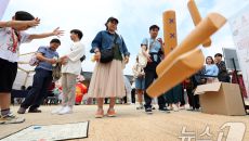 (서울=뉴스1) 김명섭 기자 = 15일 경복궁 흥례문 앞 광장에서 ‘628돌 세종대왕 나신 날 기념행사’에서 시민들이 한글 윷- 2025-05-15 15:15