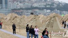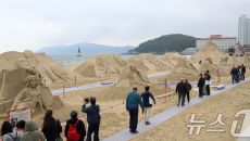 (부산=뉴스1) 윤일지 기자 = 15일 오후 부산 해운대해수욕장을 찾은 시민, 관광객들이 다양한 모래조각 작품을 구경하고 있다- 2025-05-15 15:13