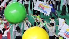 (서울=뉴스1) 이동해 기자 = 15일 서울 성북구 고려대학교 화정체육관에서 열린 '서울시 사회복지관의날 기념 올☆픽'에서 참- 2025-05-15 15:13