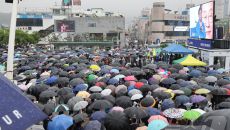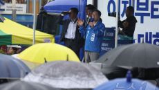 이재명 후보, 폭우 속 유세