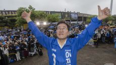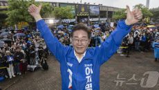 (광양=뉴스1) 안은나 기자 = 15일 전남 광양시 전남드래곤즈축구장 북문 앞에서 열린 이재명 더불어민주당 대통령 후보의 유세- 2025-05-15 14:17