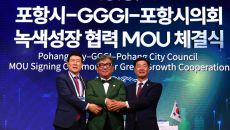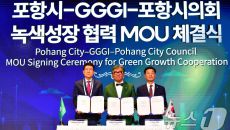 (포항=뉴스1) 최창호 기자 = 이강덕 경북 포항시장(왼쪽)이 15일 포항 라한호텔에서 열린 2025 세계녹색성장포럼에서 GG- 2025-05-15 13:46