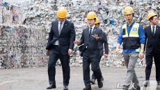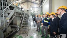 (서울=뉴스1) = 김완섭 환경부장관이 15일 대전시 대덕구 소재 한솔제지 대전공장에서서 '온라인 플랫폼 활용 종이팩 회수 시- 2025-05-15 13:49