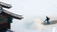 (서울=뉴스1) 임세영 기자 = 5일 서울 종로구 경복궁에서 관계자가 밤새 내린 눈을 치우고 있다. 2025.12.5/뉴스1- 9시간전