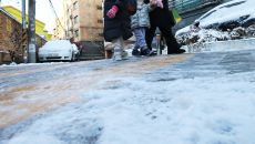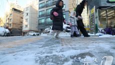 (서울=뉴스1) 오대일 기자 = 폭설 후 한파로 도로 곳곳이 얼어 붙은 5일 오전 서울 광진구에서 한 여성이 아이들과 빙판길을- 15시간전