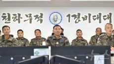 (서울=뉴스1) = 진영승 합참의장이 5일 1경비대대를 방문해 방호 임무수행 준비상태를 점검하고 있다. (합동참모본부 제공.- 14시간전