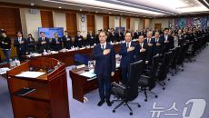 (서울=뉴스1) 장수영 기자 = 전국의 법원장들이 5일 오후 서울 서초구 대법원에서 열린 전국법원장회의서 국민의례를 하고 있다- 22분전
