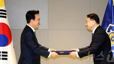 (세종=뉴스1) 김기남 기자 = 김민석 국무총리가 5일 오전 세종시 정부세종청사에서 김인호 산림청장에게 임명장을 수여하고 있다- 13시간전