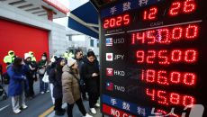 (서울=뉴스1) 김민지 기자 = 원·달러 환율이 크게 하락한 26일 서울 시내 환전소에서 외국인 관광객들이 환전을 하고 있다.- 21시간전