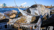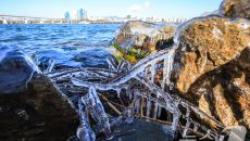 (서울=뉴스1) 김진환 기자 = 한낮에도 영하권 추위가 이어지는 26일 오후 서울 영등포구 여의도 인근 한강에 고드름이 얼어있- 2025-12-26 14:44