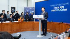 (서울=뉴스1) 이승배 기자 = 정청래 더불어민주당 대표가 26일 서울 여의도 국회에서 취임 후 열린 첫 공식 기자회견에서 발- 2025-12-26 12:53