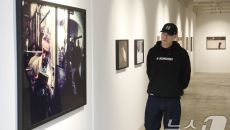 아버지 사진 작품 관람하는 박서원 전 두산매거진 대표