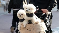 (대구=뉴스1) 공정식 기자 = 하루 사이 기온이 크게 오른 15일 오후 대구 중구 동성로에서 한 시민이 반려견을 유모차에 태- 13시간전
